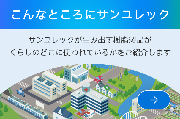ものづくりの進化に欠かせない「樹脂」。サンユレックは1958年の設立以来、小ロット・多品種の樹脂開発と製造を続けてまいりました。