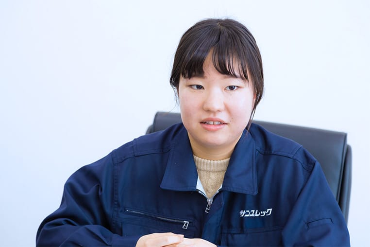 学んでいたのは樹脂とは無縁の分野でしたが、面接を受けた際に「樹脂に関する知識は入社後に身に付ければ大丈夫」と背中を押していただき、その温かい雰囲気で入社を決めました。