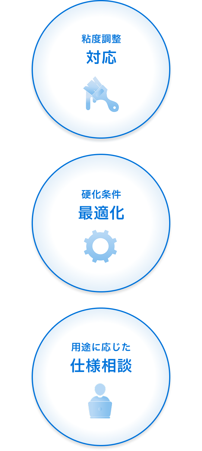 - 常温硬化可能:硬化炉不要で工程内の電気使用量削減
